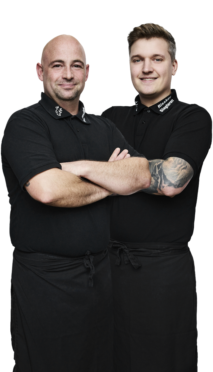 Slagtermester Kasper og Frank står i spidsen for slagterbutikken i Risskov. Her er kvaliteten altid i højsædet – og vi går ikke på kompromis! Alt er tilberedt efter stolte håndværksmæssige traditioner, ligesom alt er tilberedt fra bunden af de lækreste råvarer.